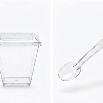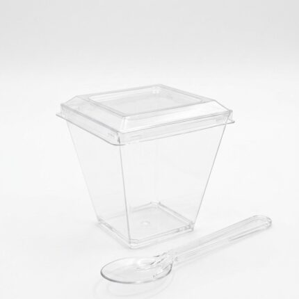 Pucharki plastikowe do deserów 200 ml z łyżeczką. 5 szt