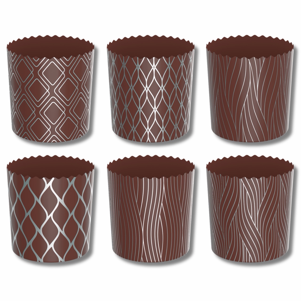 Papierowa forma do pieczenia babki wielkanocnej (paschy) z tłoczeniem srebrną folią, d130×85 mm — idealne rozwiązanie do wypieku średnich babek wielkanocnych, panettone lub cruffinów.