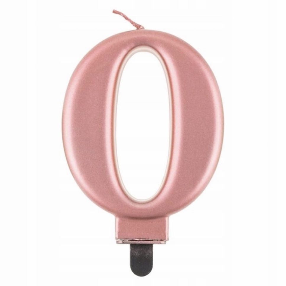 Świeczka cyfra 0 metalik RÓŻOWO-ZŁOTA 8 cm