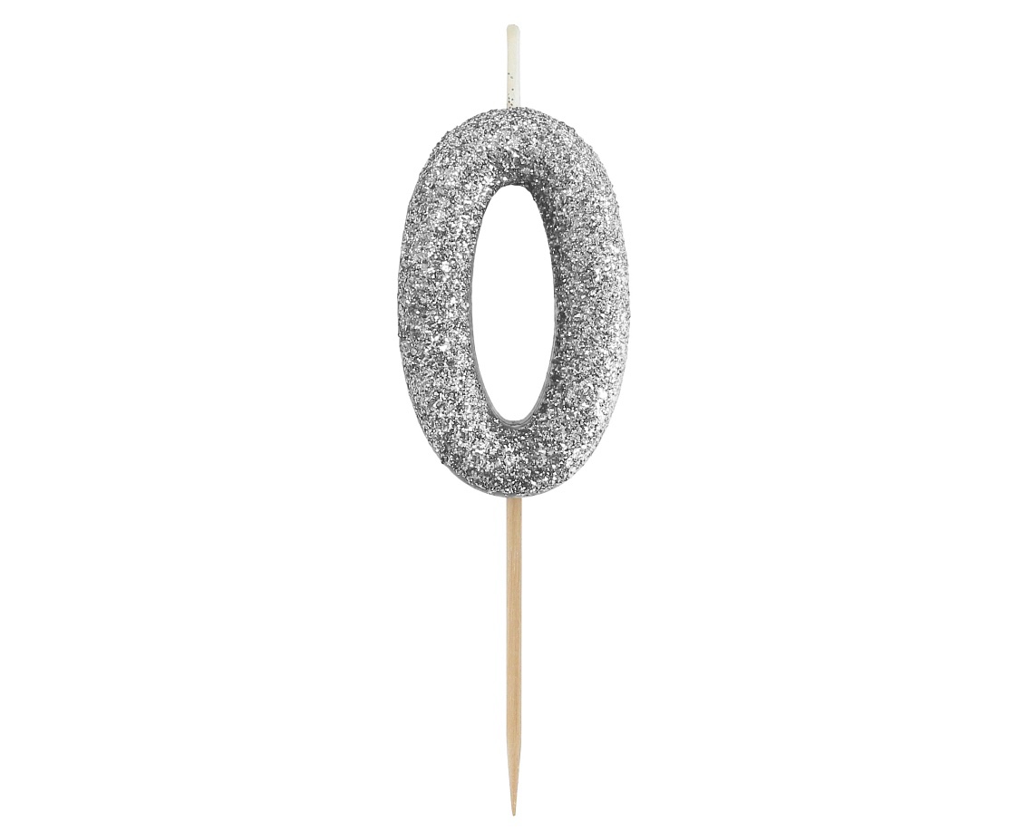 Świeczka Cyfra 0, brokatowa czarna, piker