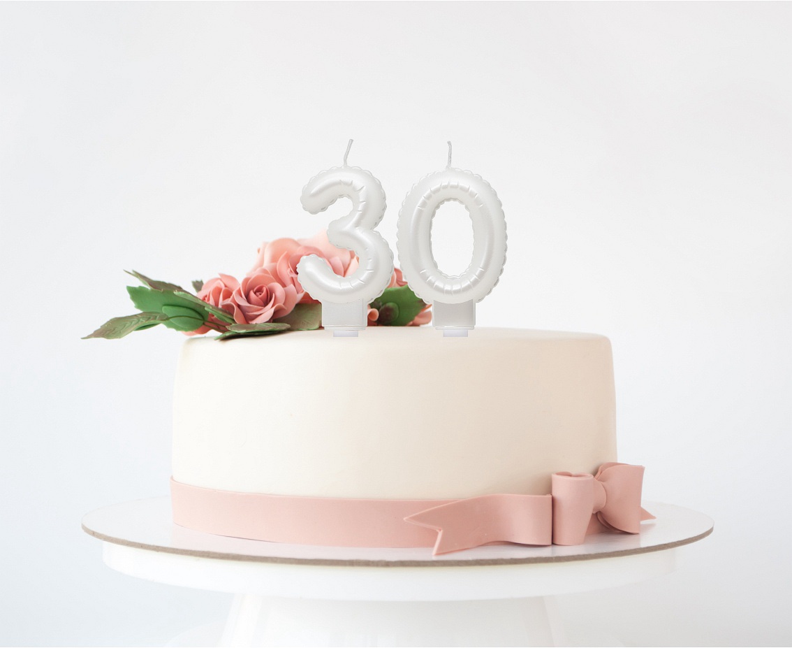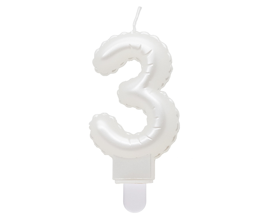 Świeczka Cyfra 3, B&C perłowa biała, 7 cm