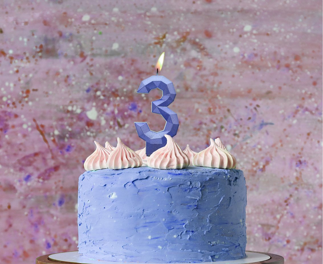 Świeczka Cyfra 3 – Diament, metalik ciemnoniebieski, 7.6 cm