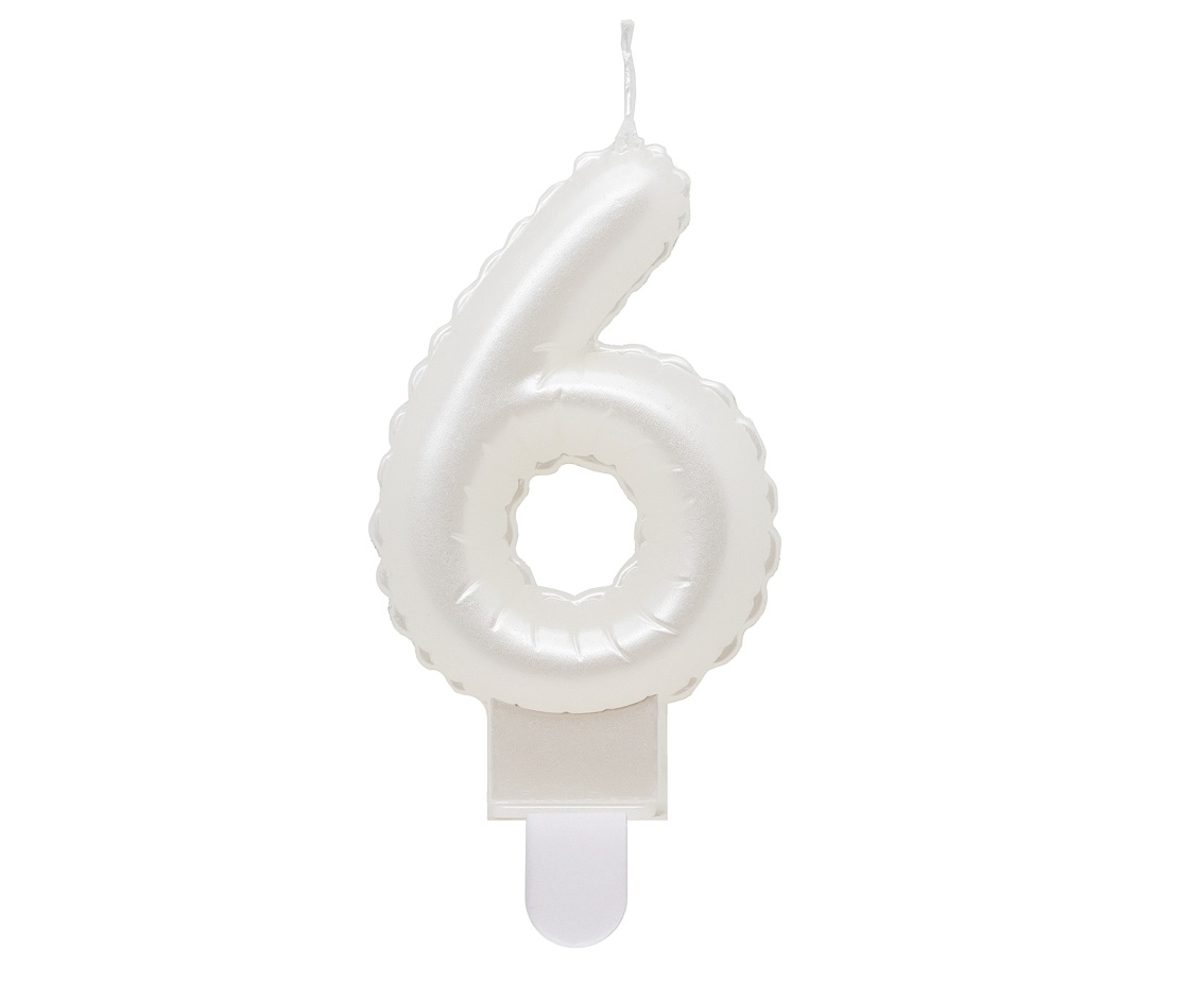 Świeczka Cyfra 6, B&C perłowa biała, 7 cm