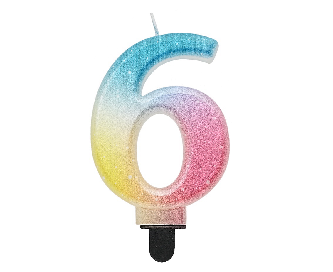 Świeczka Cyfra 6, ombre, pastelowa, 8 cm