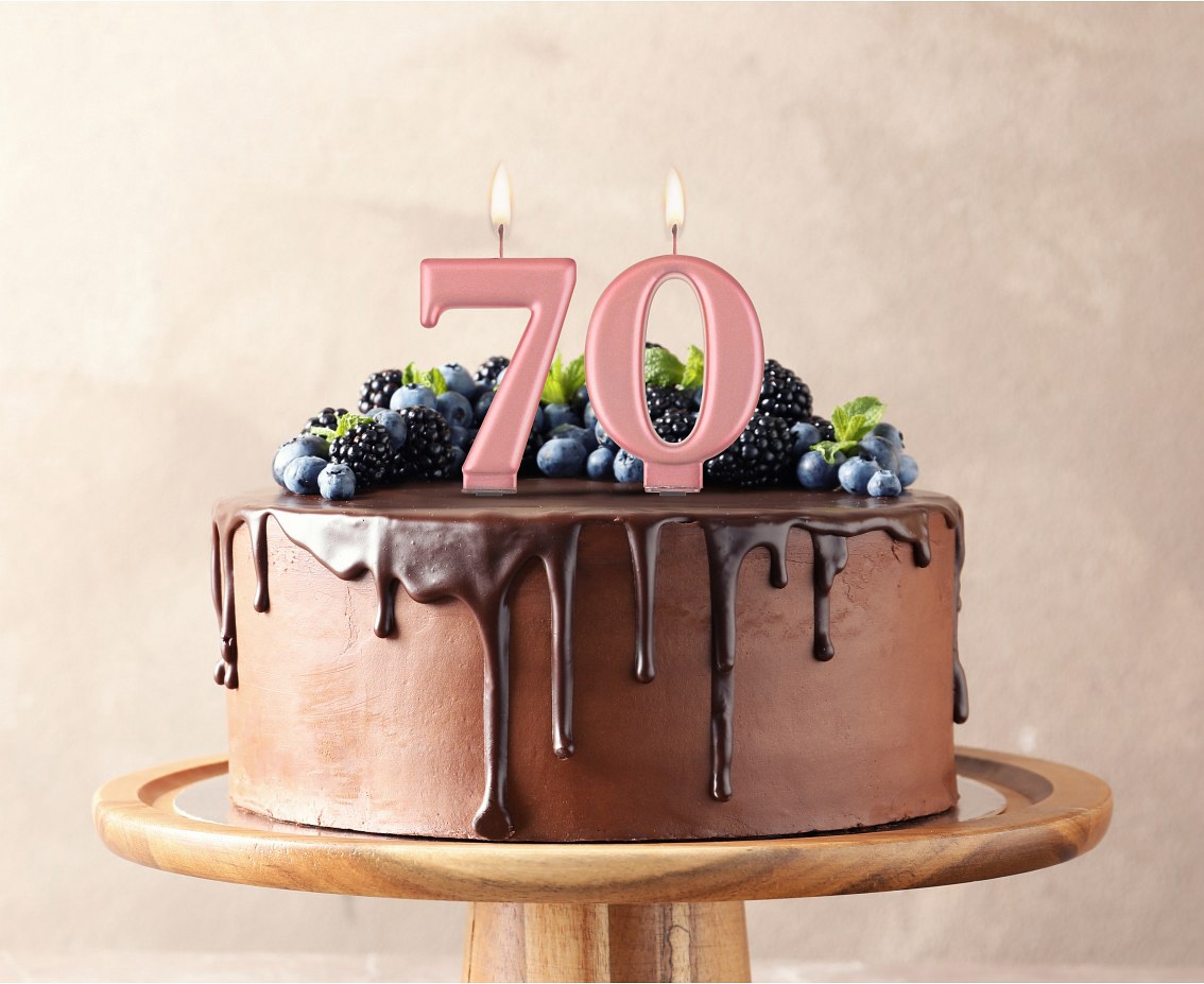 Świeczka cyfra 7 urodziny, metalik różowo-złota, 8 cm