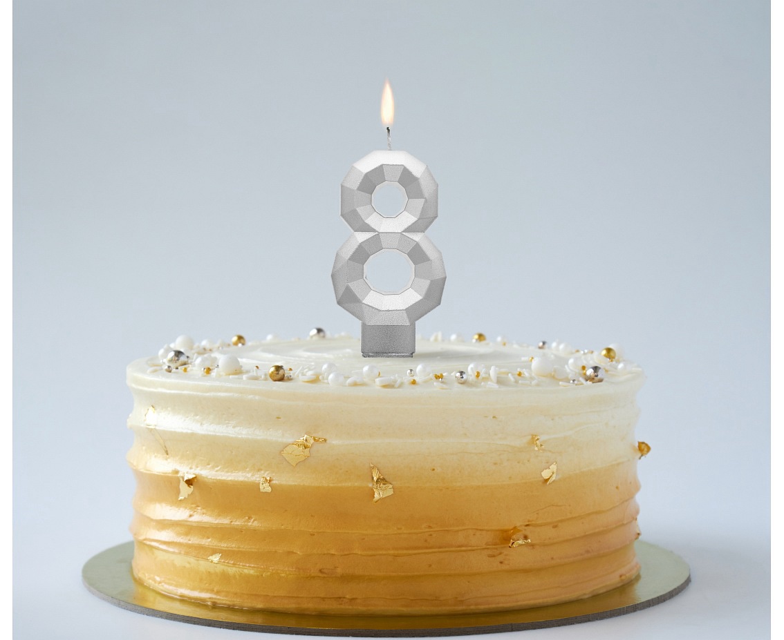 Świeczka Cyfra 8 – Diament, metalik srebrny, 7.6 cm