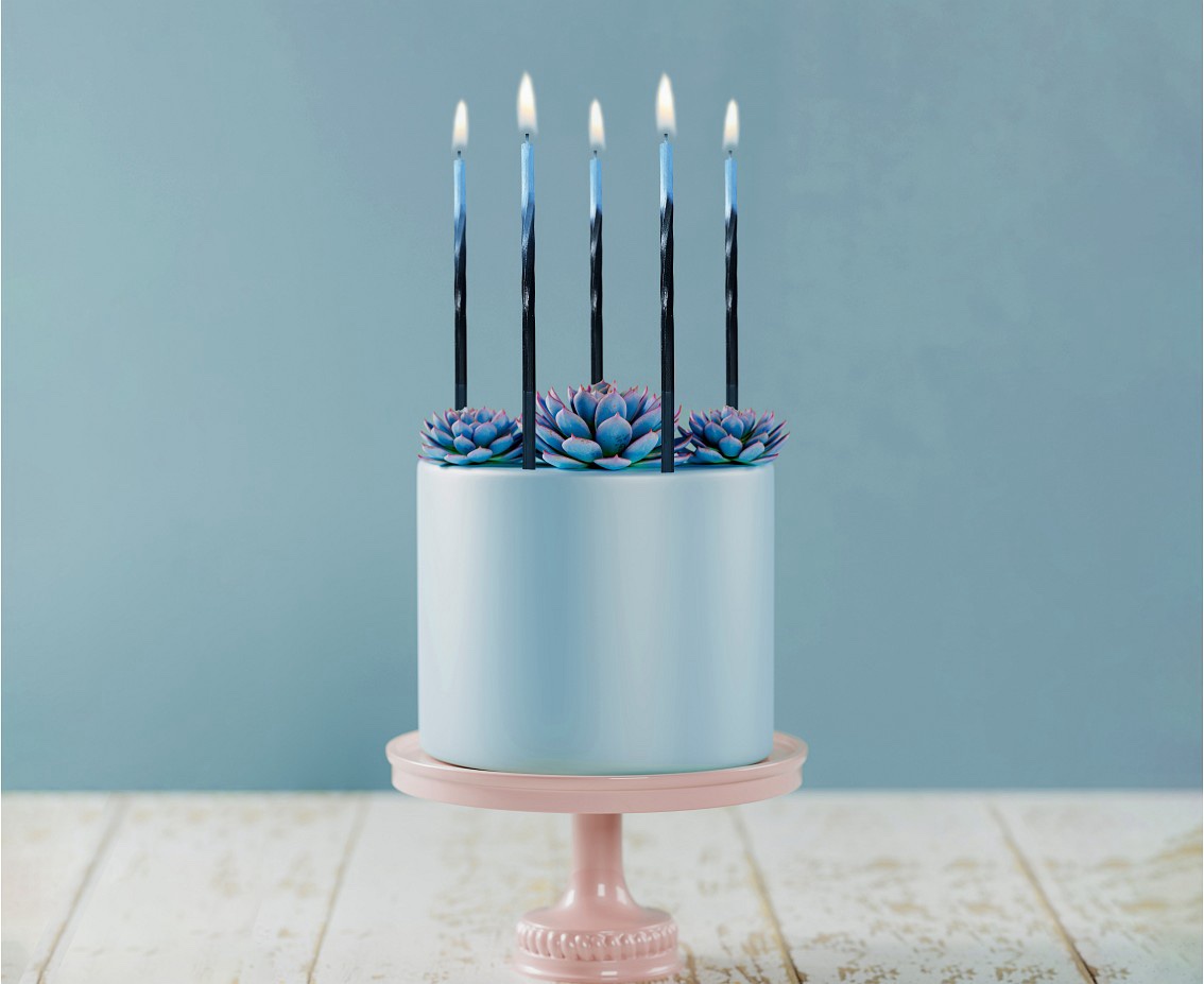 Świeczki B&C Świderki Ombre, niebieski/czarny, 5x5x150mm, 5 szt.