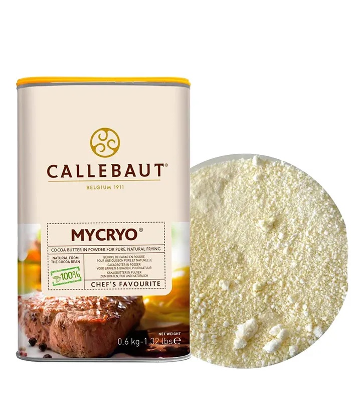 Tłuszcz kakaowy w proszku MYCRYO marki Callebaut to profesjonalny produkt cukierniczy, który ułatwia temperowanie czekolady oraz poprawia strukturę i trwałość wyrobów. Idealny do pracy z czekoladą, pralinami, formami oraz jako dodatek do mas cukierniczych.